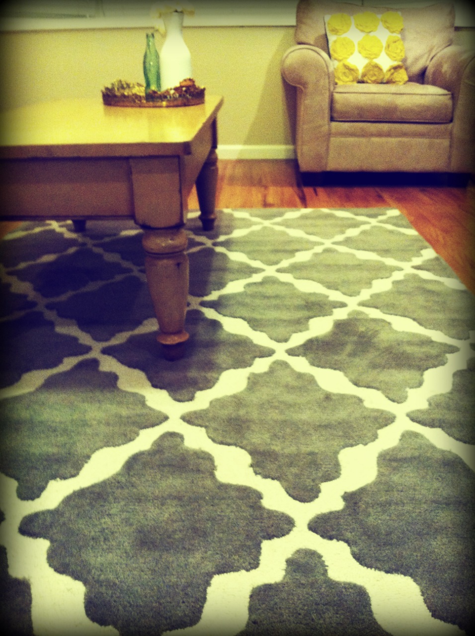 Guess what came in the mail today!!!! My gorgeous Pottery barn Teen lattice rug (Yes I said PB teen). I am obsessed with this rug. I can’t stop staring! I decided on warm gray, but it also comes in light blue (aqua), mauve & black.