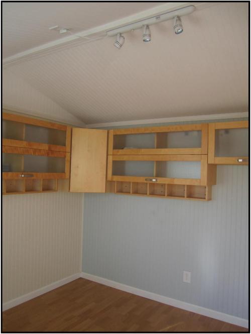 The separate back studio/office offers dual pane windows, built in storage, fully insulated, laminate floors, halogen liting, cat-5 lines , A/C and it’s very own front porch! – Completely permited