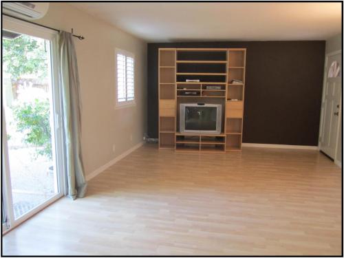 Living room just off the kitchen & dining area has sliding glass door to the backyard & Eco-friendly Mitsubishsi ductless air conditioner & heater w/controller. (There is one in the living room & hallway) Learn more about the ductless heating & cooling system here