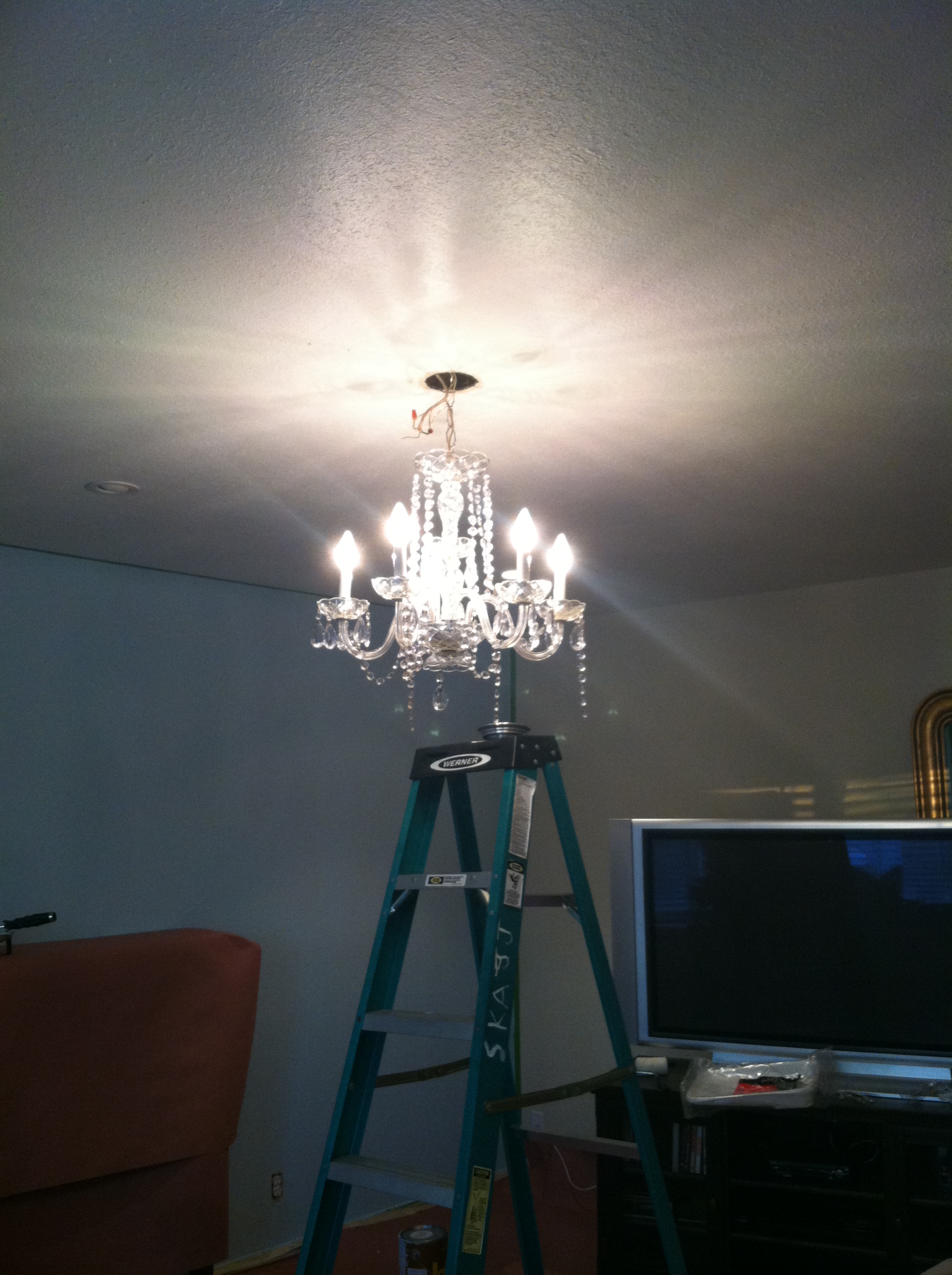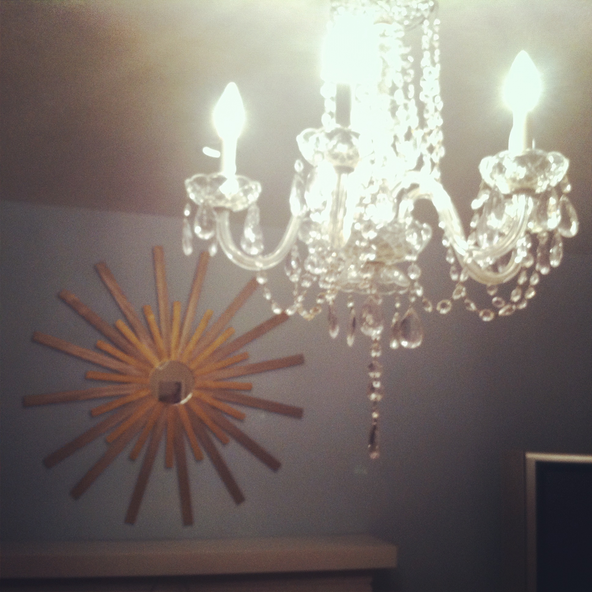 Ta-dah!! The sofa is from Zgallerie – Oscar Sofa, vintage chandelier is from the Alameda Point Antique Faire – $70