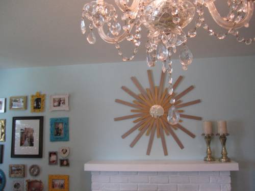 We painted the aqua accent wall with Benjamin Moore’s Bird’s Egg. For the sunburst mirror DIY click here + my picture frame gallery wall DIY here.