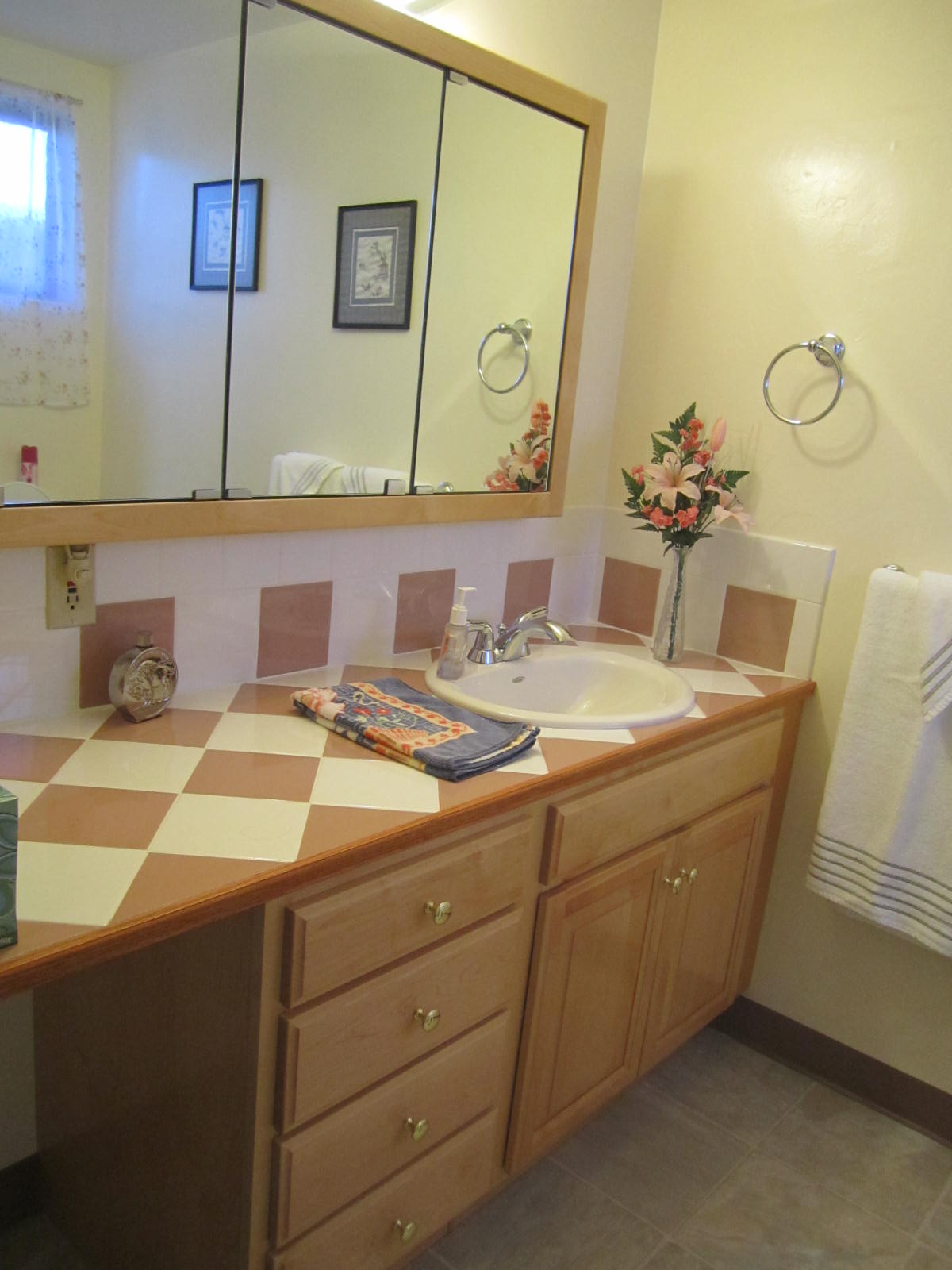 the master bathroom has maple cabinetry w/extra storage