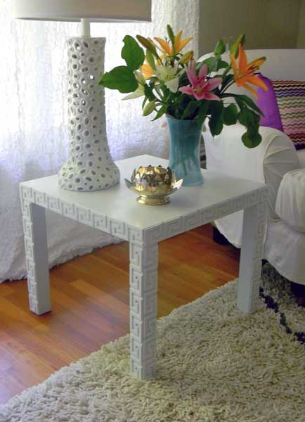 I really didn’t feel like getting out my paint brushes, sander & primer and doing the whole messy ordeal, so I grabbed a couple of cans of Heirloom White Rust-oleum spray paint from Home Depot. (I ended up needing 4 cans) + some spray adhesive to apply the trellis paper to the windows.