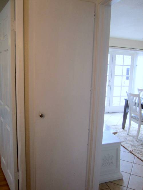 Not the cutest door, but a photo collage could definitely bring some pretty to this dingy closet.