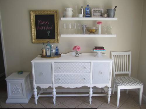 Gorgeous chic trellis stencil.. I have been dying to try this on something. I have been thinking about buying a second hand bookcase for my storage challenged home office. As soon as that happens, I’ll be all over this.