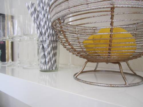 Love this funky geometric wallpaper + the hot pink tissue box doesn’t hurt either. A bright pop of color, is sometimes all you need to give a room that wow factor.
